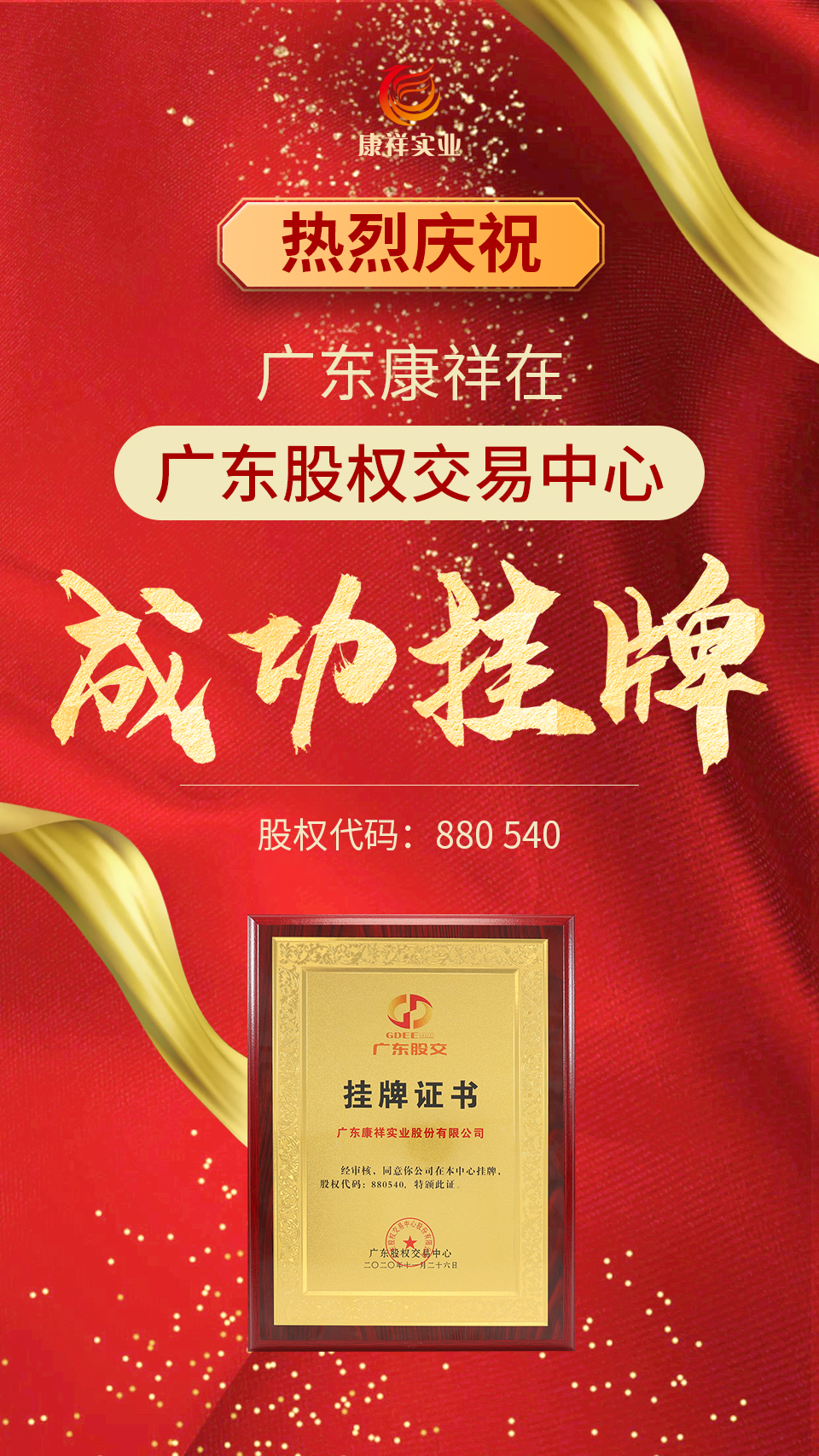 公司總經(jīng)理陳林僑先生表示:“此次在廣東股權(quán)交易中心掛牌,是廣東康祥實(shí)業(yè)股份有限公司果斷走向資本市場的重要一步,用資本的力量推動產(chǎn)業(yè)的發(fā)展,用品牌的力量充實(shí)資本價(jià)值,實(shí)現(xiàn)產(chǎn)融雙輪驅(qū)動,必將激勵廣東康祥在新時(shí)代、新征程上披荊斬棘、奮勇前進(jìn)!”