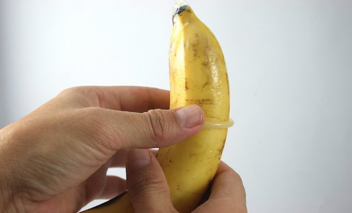 未切除包皮的陰莖:擠出儲精囊中的空氣,將避孕套套在陰莖頭上,輕輕順著陰莖卷開避孕套,用一手抓住避孕套,另一只手把包皮塞入避孕套中。最后檢查一下有沒有氣泡。