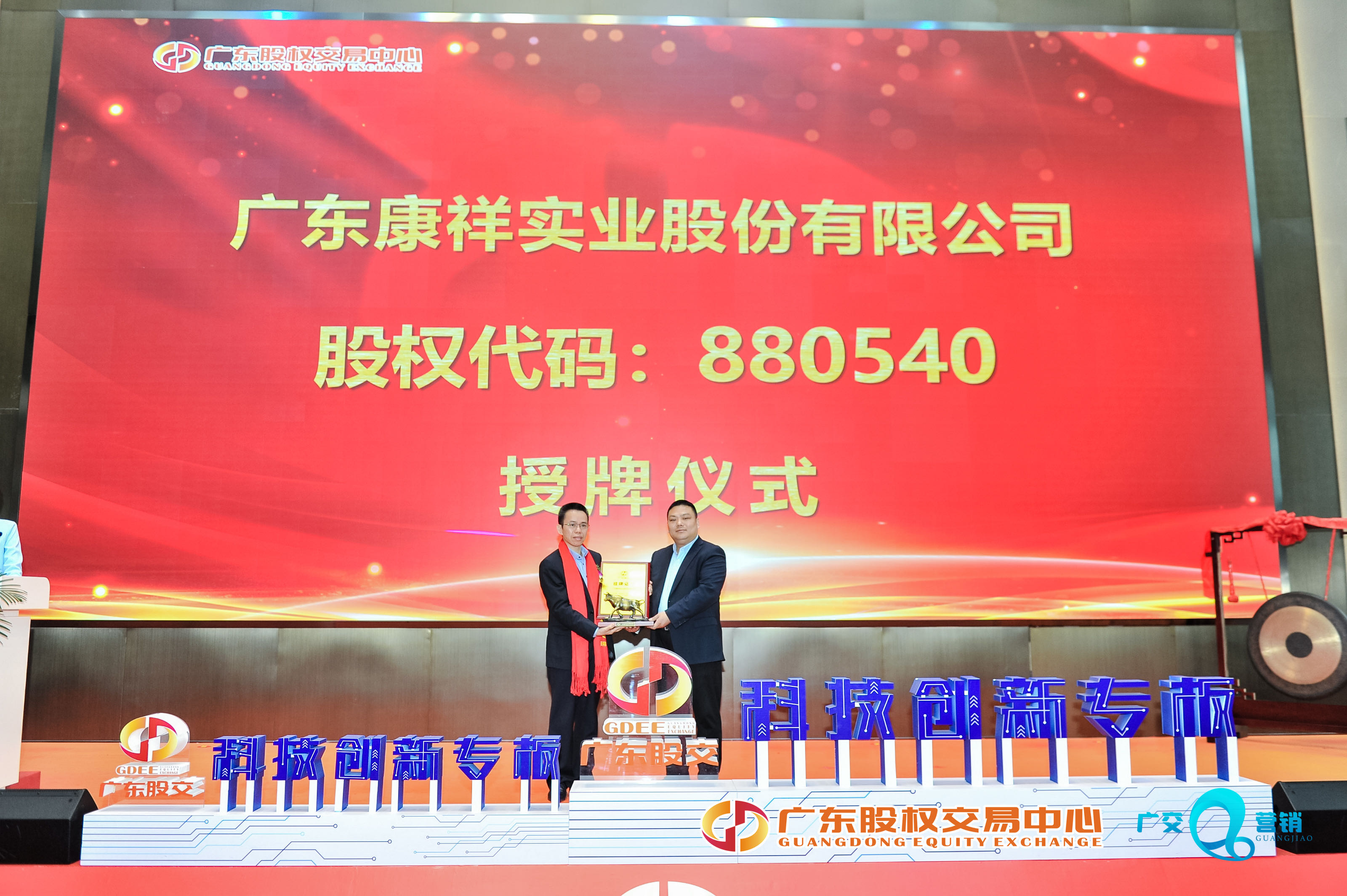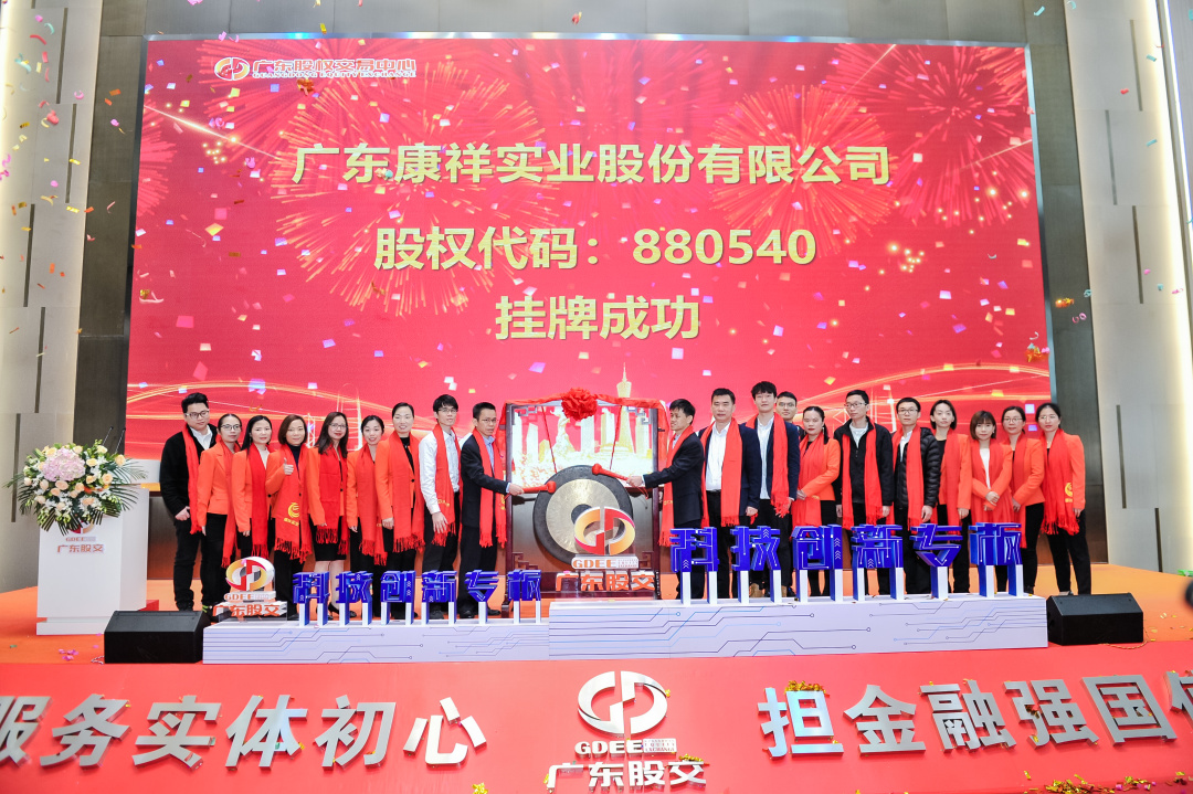 2021年3月23日上午,伴隨著響亮的敲鑼聲,廣東康祥實業股份有限公司(股權代碼:880540)在廣東股權交易中心標準板成功掛牌,標志著廣東康祥在深耕行業同時,正式進入資本市場!